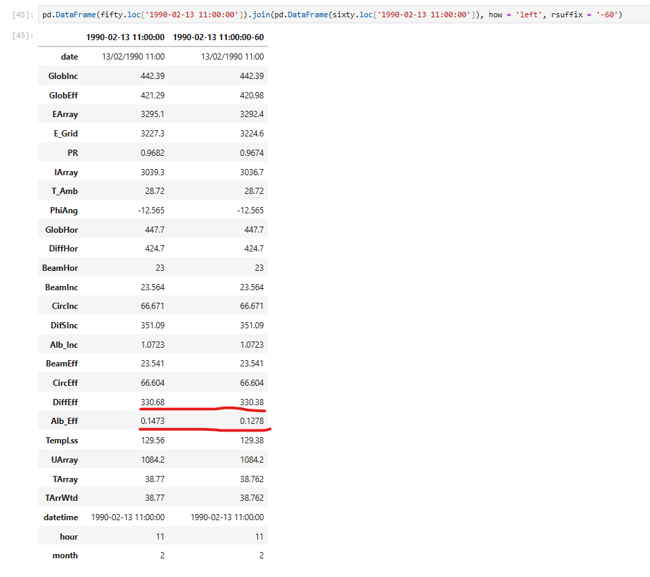 Hi PVSyst team, I've been doing some investigation into the effect of how energy production is affected by changing the SAT tracker angle limit from 50deg to 60deg. I've created a project with a SAT with +/-50 degrees tracking limit (PhiAng). I've copied this project and changed the tracking limit to +/-60 degrees (PhiAng). No other parameter or input was changed - same weather file, same components, no changes to tracker geometry, 3D model or site configuration. Interestingly, output reduces slightly with a +/-60 degrees limit. While investigating this reduction, it appears that I'm getting a difference in effective irradiance components between the 50 degree and 60 degree simulations at times when the trackers are at the same phi angle. I'm assuming that the difference in calculated effective irradiance components is then driving the differences seen in temperatures, current and energy production. I have attached a screenshot of a single timestamp for both simulations, and a comparison of effective irradiance components and PhiAng across an entire day. At the time shown (11 am, southern hemisphere summer), the two systems should be in *identical* states (same weather data, same system definition, geometry and layout, well outside any periods of backtracking), any ideas why changing the only tracker angle limit would result in these different calculated irradiance values? Thanks