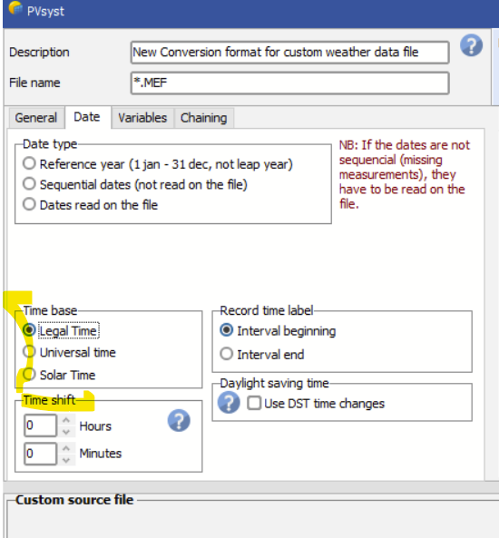 Did you try to define the time shift as indicated in the error message? You should also check that you have input the correct time reference If the time shift information you input is not taken into account or if non of the time base work, could you please sent your csv data file, .MEF file and PVsyst version to support@pvsyst.com so we can have a closer look at your problem -