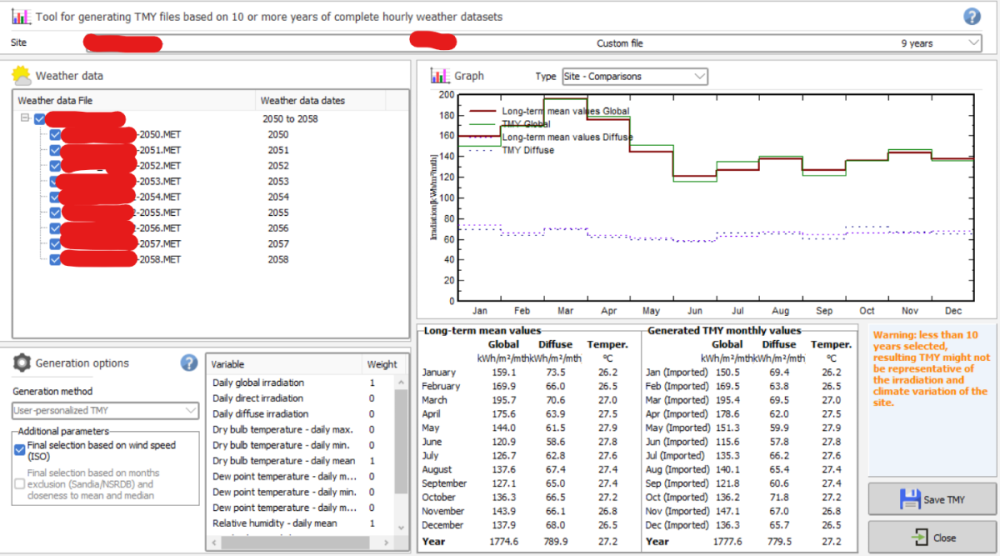 Hi, i have created 10 years worth of MET files for TMY generation from 2050-2059 but when i go to TMY generation tab, it only shows MET files up to 2058. This is a bug? thank you.