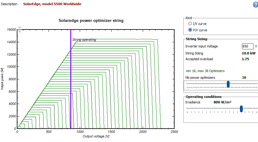 Inverter loss over nominal power usually represents the energy lost due to the inverter max AC power. It can also include the energy lost due to the grid maximum power if the option "Account as separate loss" in the power limitation window is not selected. Having optimizers in your system should have a very limited impact on the inverter clipping losses, as long as they are not limiting the max string power. With SolarEdge, this will mostly depends on the number of optimizers per string. In the example below, the max string power cannot be reached. The string operates at constant voltage (850V), but the max optimizer current is 15A so the max output power is limited to 12.75kW. In this situation, the clipping that used to be necessary at inverter level will occur at optimizer level. You can check this by looking at OP_Imax or OP_Pmax values, respectively, the clipping loss due to the max optimizer current and max optimizer power. NB: There is a known issue in PVsyst 8.0.15 to 8.0.21 that overestimates the current clipping losses. If you are in this situation, please use PVsyst 8.1.0 or later. In the case of the inverter, the percentages are expressed based on EArray, not Egrid. Could that explain the discrepancies you are seeing ? - Yesterday