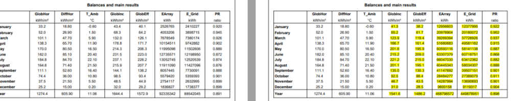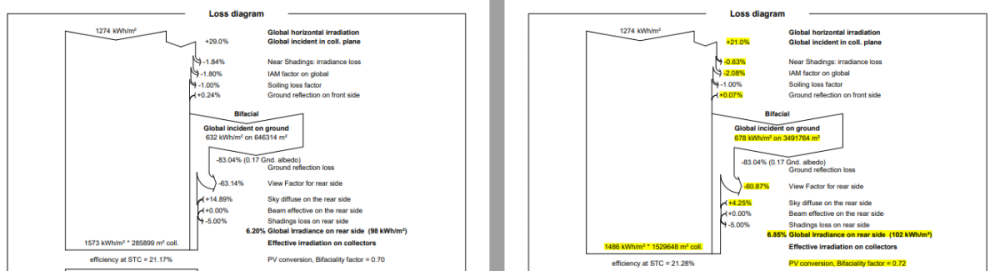For PVCASE scene this always much lower value. Both tested with 7.2 and 7.3 version considering backtracking. 1644 vs 1541! Azimuth for trackers = 0.