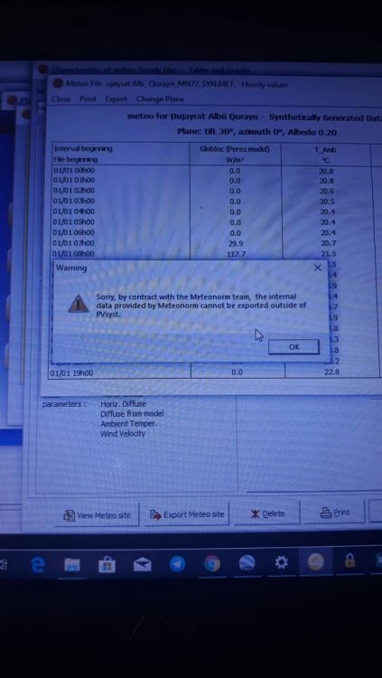 Hi I recently faced a problem withpvsyst in meteo tables and graphs in the database.in fact, when I want to export data from tables to use in the other software like excel, I faced this message: sorry, by contract with the meteonorm team, the internal data provided by meteonorm cannot be exported outside of PVsyst. please help me. what should I do to export data?
