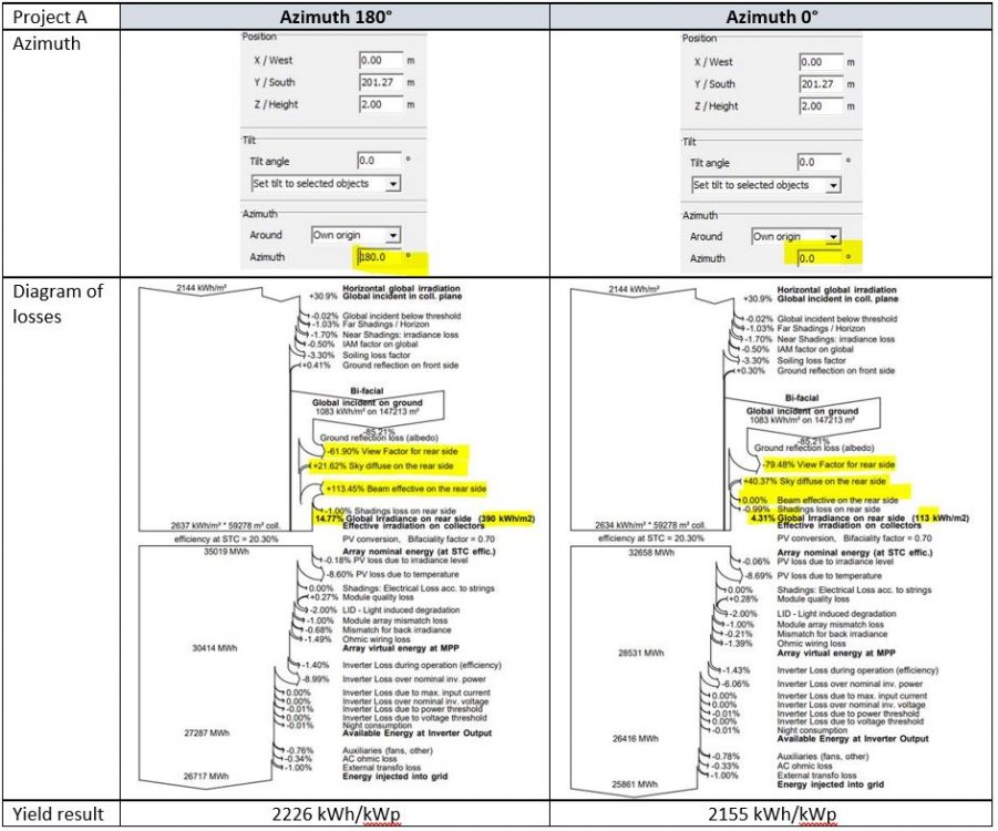 Hi Andrés, The guaranteed PR is caclulated from PVsyst output and the reference irradiation could lead to mistake of inpretation. In PVsyst, irriadiation on the plan of the collectors, being impacted by far and close shading are: GlobHrz Global on collectors, corrected for horizon (far shadings) GlobShd Global on collectors, corrected for horizon and near shadings could you confirm what should be the reference computed irradiation values to use for the guaranteed PR for each of the following configuration: Configuration 1: Fix tilt structure - Pyranometer location: located in front of the installation (on the first shed) > in that case the pyranometer would "see" the Beam component, the Diffuse component and the Albedo component (impacted by the horizon). - Tilt irradiation to use for the Guaranteed PR: According to me this should be "GlobHrz" Configuration 2: Fix tilt structure - Pyranometer location: located on a shed with neighbors rows > in that case the pyranometer would "see" the Beam component and the Diffuse component (impacted by the horizon) but not the albedo component (?) - Tilt irradiation to use for the Guaranteed PR: According to me this should be "GlobShd" Configuration 3: Tracker structure - Pyranometer location: located on a shed with neighbors rows > in that case the pyranometer would "see" the Beam component and the Diffuse component (impacted by the horizon) but not the albedo component (?) - Tilt irradiation to use for the Guaranteed PR: According to me this should be "GlobShd" Could you let me know if those assumptions are correct?