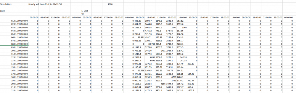 1. Hi! How can I transform the simulation data from PVsyst which is verticaly into horizontel setting? The normal transpose function will not work here since it has to be done for 24 hours* 365 days and every day individually This is how it should look like. best Rouven