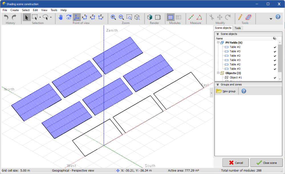 Hi Matt, I see. In fact, the importance of shadings depends on your choice of tracking algorithm. If you use traditional true tracking, then indeed shades may be important. However, many tracking systems use backtracking, which, for low sun angles, sets the trackers at more horizontal angles, to avoid shading the direct irradiance component. When using the batch to change the pitch and number of trackers on your "array of trackers" (that is defined as an array in the 3D scene), make sure that you also change the number of modules, strings, and inverters accordingly (and if applicable). -