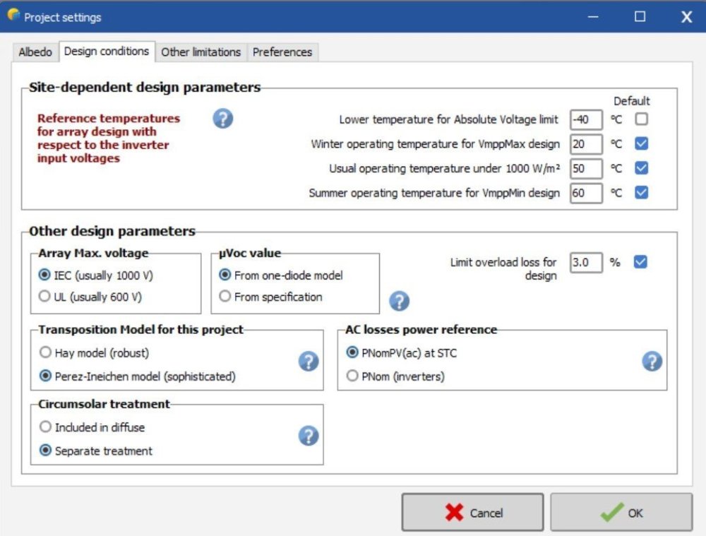 I am looking for clarification for the string voltage sizing calculations in PVsyst. The Maximum and Minimum temperature in the project setting window is ambient temeprature value or Module/cell temperature . If it is cell /Module temperature (as per help) then does user need to find the cell/ module temperature using ambient temperature using the IEC 68153 which is bit tricky because it is dependent on Irradiance and coefficients. PVsyst does calculate the module temperature hourly but can user input the min and max cell temp values in the project setting window without much of calculations.