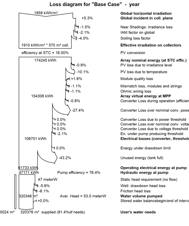 I am designing a PV pump system as part of my academic project, but in loss diagram i notice that majority of loss is coming from "unused energy" and "converter loss over nominal conv. power". Can i know what parameters affect these two losses, how can i reduce this.