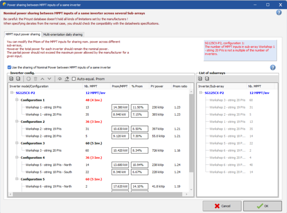 At error interface says that "The sum of the MPPT inputs is not a multiple of the number of inverter MPPT inputs." and I cannot click OK because of that.