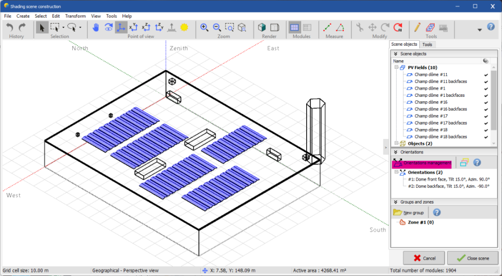 Dear Andrés, I suggest grouping your PV array based on the electrical layout you have planned with the inverters. It can add complexity to your project, so if you have a varying base slope, it's better to use a single orientation. PVsyst has implemented a new tool to estimate the percentage of losses due to slope variation. Go to the Near Shadings > "Orientation Management", then click on the "Orientation Distribution Analysis" tab. Choose the plot type "Base slope deviation, absolute errors". In my example below, you can see a loss of -0.02% due to averaging the base slope into one orientation: Regards,