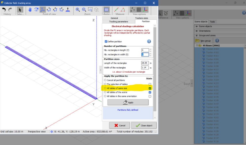 I recently updated to PVSyst 8.0. When I import a shading scene from PVCase, the row (field) sizes are larger than how many modules there actually are due to motor/joint gaps in the rows. Subsequently, with the 8.0 update, I get an error saying that there are more modules in the 3d scene than is specified in the sub array. For example, I have a row with 100 total modules, but PVSyst thinks there are 103 modules based on the size of the module and the size of the row. I am not sure how to modify a large number of these rows to align with how many modules are specified in the sub-array. Can you advise on how to align the system subarray strings/module quantity with the 3d fields?