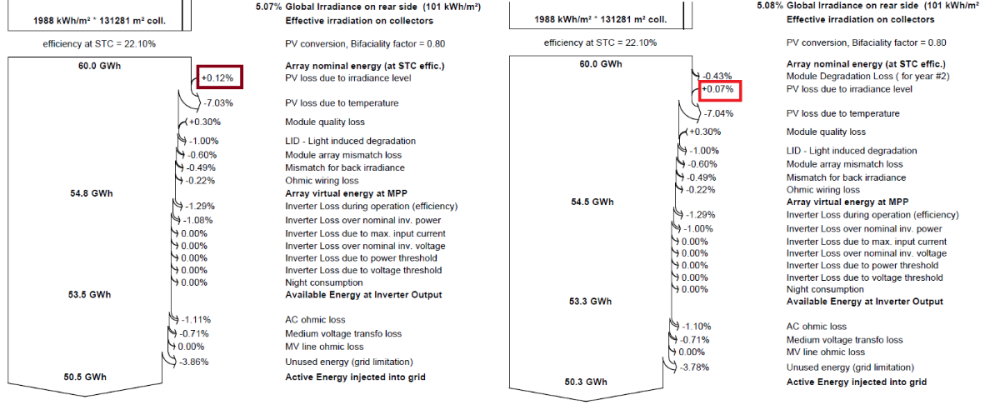 With certain modules, the PV loss due to irradiance level changes when changing the module degradation loss. This only happens when the module degradation loss is changed from 0% to 0.4% but it doesn´t happen for changes from 0.4% to bigger values. But since the PV loss due to irradiance level stands for the low module efficiency with low irradiances... shouldn´t it remain constant?