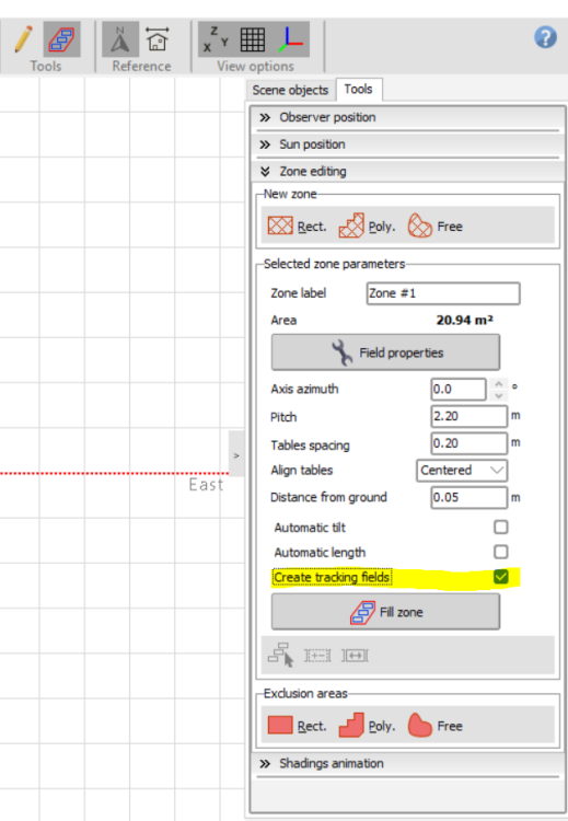 Hi! The Field type "unlimited sheds" is a great option for a first parameterization to consider mutual, inter-row shadings without defining a 3D scene. You here get the a calculation of your groud cover ratio: A(coll)/A(ground), thus the area of the panels compared to the ground area required. To do the calculation correctly you should verify the size of your panels and make sure the Coll. band width correspond (considering also if you have multiple panels in height, if they are vertical or horizontal etc.) You can here also define the Electrical effect of the mutual shading. The area in the system window only consider the area of the chosen panels, not the layout of the system. To get an approximation of the actual needed area you could use the Ground coverage ratio and the area of the panels in your system. For a precise sizing you should choose the field type Fixed Tilted Plane and create a Near shading scene with the exact dimensions of your roof and place tables in this dedicated available zone. Kind regards