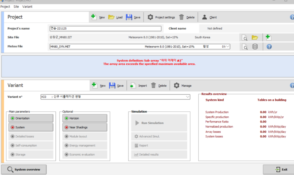 1 sub-array PNom = 183 kWp, modules area = 868 m²