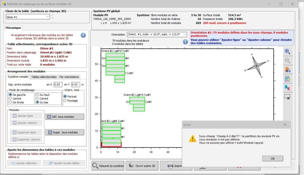 Good morning, I want to define the layout of my modules, however PVSYST does not allow me to access the page. He writes the following message The partition of PV module into submodules is not defined. You cannot use the "Layout" module tool. However, I clearly defined the score in the nearby shading scene. can you help me