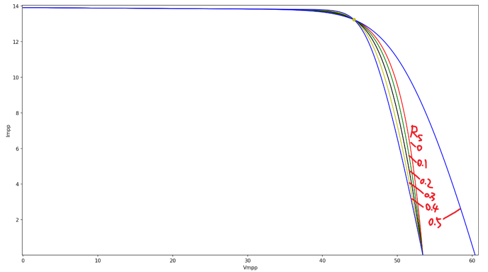 As show below , the Rs,max given in PVsyst is 0.23 , but I can use larger Rs(0.3,0.4) to plot , when Rs is too big(0.5) , the image is indeed distorted , but now the value is far ahead of Rs,max.