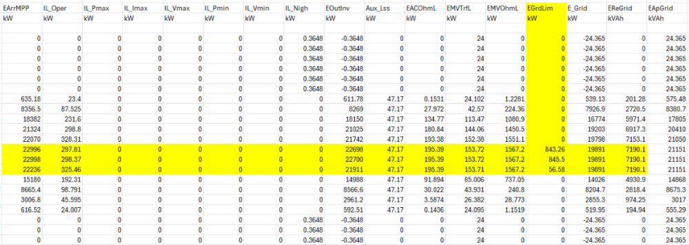 Hi everyone, I’ve run into something odd in PVsyst and I’m hoping someone can help clarify what’s going on under the hood. The situation: I’m using an inverter “.OND” file supplied by the manufacturer. In both the Main Parameters and Output Parameters tabs, the inverter’s Maximum AC Power is listed as 1265 kW (at low temperature, so no derating). However, when I look at the DC-to-AC performance curves (DC input power vs. AC output power), the data only go up to 1100 kW—which is the nominal power rating. My questions are: Which number does PVsyst actually use when simulating maximum AC output? Does it honor the 1265 kW value from the parameter tabs, or is it capped at 1100 kW based on the performance curve data? If PVsyst does cap the AC output at 1100 kW, is there a way to override this (e.g. by editing the curve or adjusting settings) so the full 1265 kW is available under ideal conditions? I appreciate any insights or experience you can share—thanks in advance!