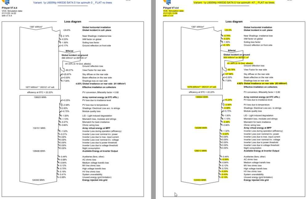 - idenatical parameters expet the azimuth.One is 0 degree , one is -47degree.