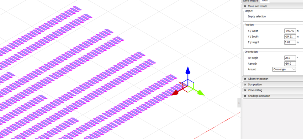 Hello Stephaene, Yes, your instruction works perfect. Furthermore, I would like to ask if I should change anything else in order PVsyst recognize the correct azimuth. When i don't choose the choice "Apply 180 rotation". Because in image that i attach below i defined from 3d schene dialog Azimuth 0 degrees. But the one panel cover the other. By default in this system PVsyst defined the azimuth -90 degrees, which i don't want in my simulation because changes the results. (second image) Thank you. -