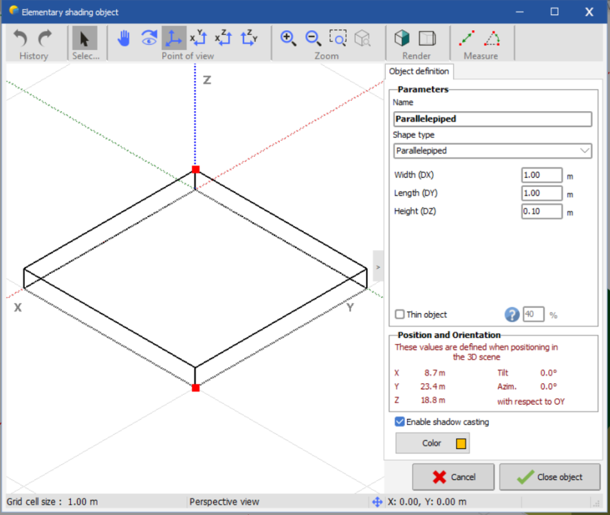 3. Very well, thank for your immidately response. Furthermore i would like somethnig else. Is there the opportunity to define angle or azimuth in an elementary shape like in parallilepided? I want to position it in a roof with specific angle and azimuth.