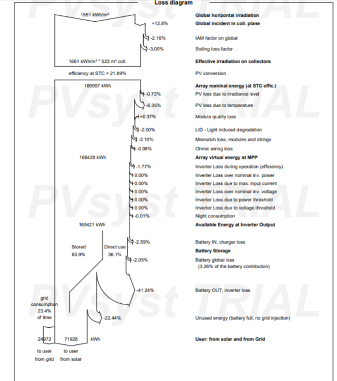 7. Hello, I am trying to simulate a project which is not allowed to injects energy to the grid. After I have defined the montly consumptions and the storage system, I ran simulation and I took this report Can you explain me what Battery Out, inverter loss means? and why is too big? Furthermore i didn't unterstand what are the three last columns in this table: I need explanaition and on this point. Thank you very much!