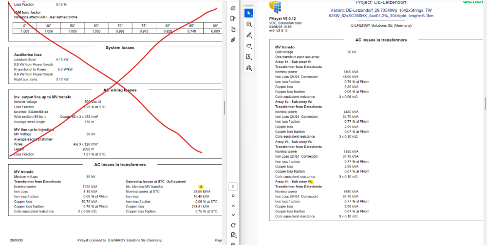Our team has been running two different different ways to calculate the MV transfo losses.