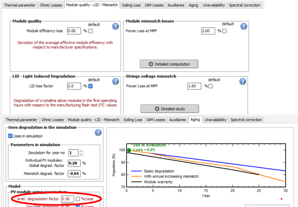 Hi, I have three concerns regarding the LID factor and how it influences the performance of the photovoltaic modules: 1. How long does the LID effect last in the useful life of a photovoltaic module? 2. Should the LID parameter be maintained during all the years of operation of the photovoltaic module? 3. For a type N photovoltaic module, what LID value is advisable to use in the simulation? Thanks for your time.