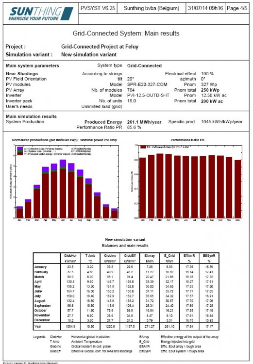 4. report Hello, I get lost with the PR calculation in the report. E_grid = 261.1 MWh Pnom = 250 kWp GlobEff = 1137.5 kWh/m² PR = 261.1/(250 x 1137.5) x 1000 = 91.8% Report shows 85.6% Please help? Best regards, Bart Van Vooren