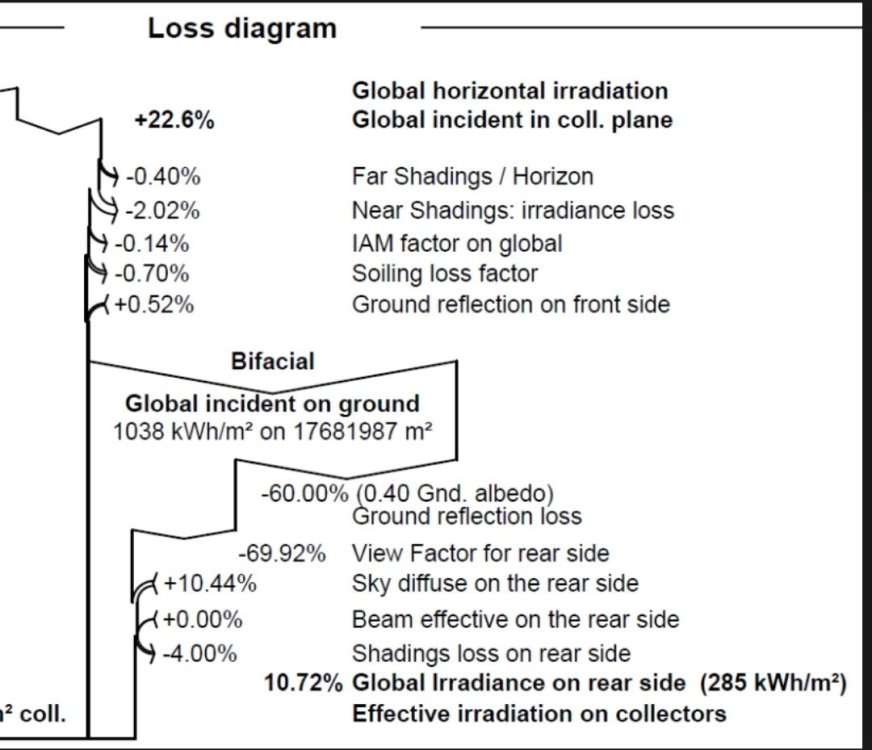 Hello, Thank you in advance. My I know how the global irradiance on the rear side is calculated 10.72%(285Kwh/m2) considering the the site irradiance was 2229KWh/m2.