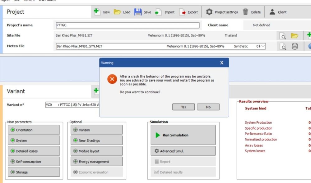 PVsyst cannot press run, an error appears