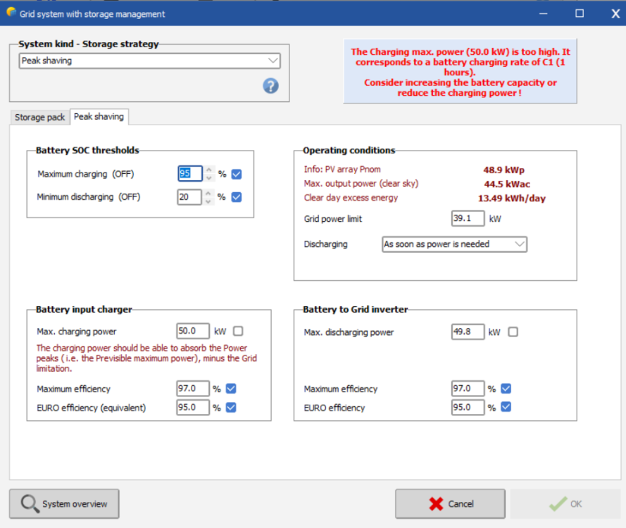 The problem is that when I define the parameters, it appears an error saying the max charging power (50 kW) is too high and I do not understand why.