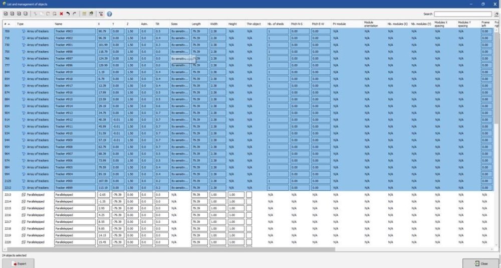1. Hello, I have a project where I created a 3D scene of trackers in near shading. The height of the placed trackers is 1.5m and it is seen in the list of management tools, but in the near shading, the trackers appear to have different heights in Z-Y plane. What could be the problem!?