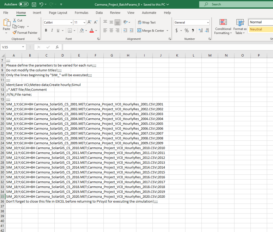 Hi, I am trying to follow these same steps. I need to get 20 hourly production simulations by varying the meteo file I already have uploaded in the database. However, for some reason, the hourly production files are not showing up. Can you help me by giving me an example of how to vary the meteo file or tell me how to do it step by step, please?