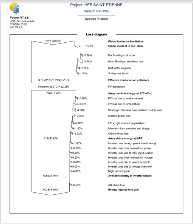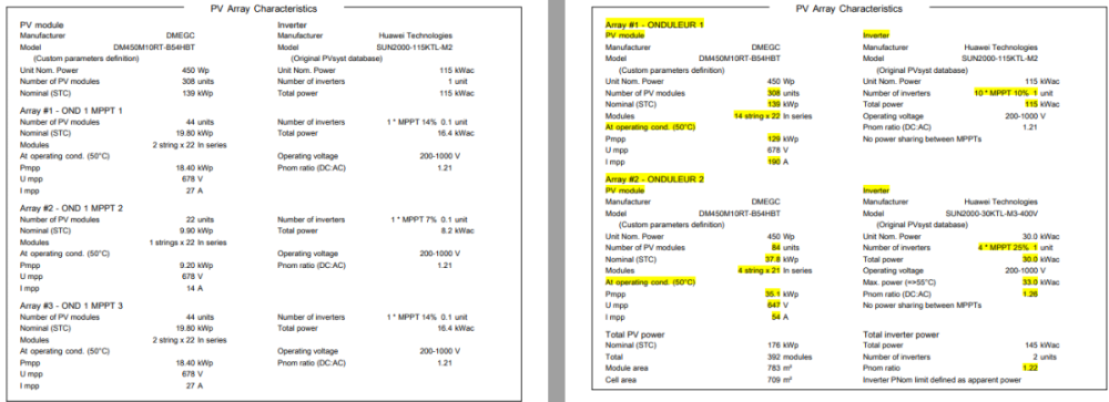 Hello, In France, low-voltage grid connections are only available for photovoltaic plants with an apparent power of up to 250 kVA. However, in some cases, we need to to use several inverters, resulting in a total installed power higher than 250kVA. In this situation, inverters are subject to a static power limitation of 250 kVA to comply with low-voltage grid connection constraints. What's the best way to simulate this limitation in PVSYST ? Should I simply define a grid power limitation ? or should I change the maximum power output of my inverters in the .ond files ? I have tested both approaches but the results are not the same I would appreciate your insights on the most accurate way to model this scenario. Best regards