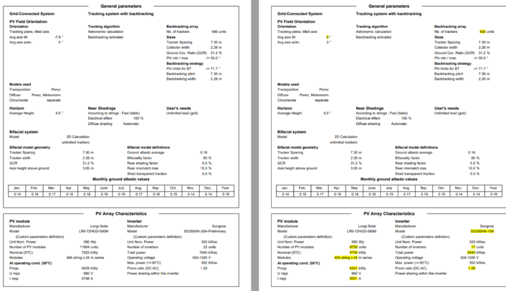 Hi Michele, thank you for your answer. Below you can find the comparison between the "General parameters" pages for the two projects. As for the question about irradiance optimization, I just checked it and it has not been activated in neither of the two simulations. I will also share my projects with you through the mail you have mentioned. Looking forward to having a clearer view on this matter 🙂 -