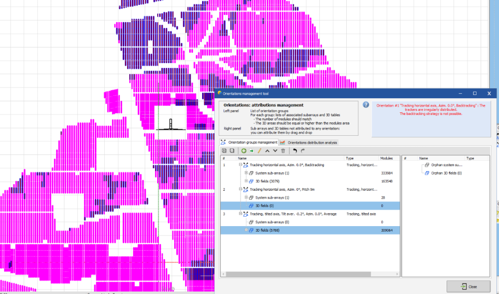 Hi, thanks for the answer. My problem is that when I import the pvc file with the shading scene I do not know how to associate the different pitch to the two system sub-arrays. Like in this case, I have already created two sub-arrays in System design for the two pitch values, but how can I associate them correctly? If I click on one of the two group of the 3D fields, it highlights a mix of trackers with the two different pitch values.