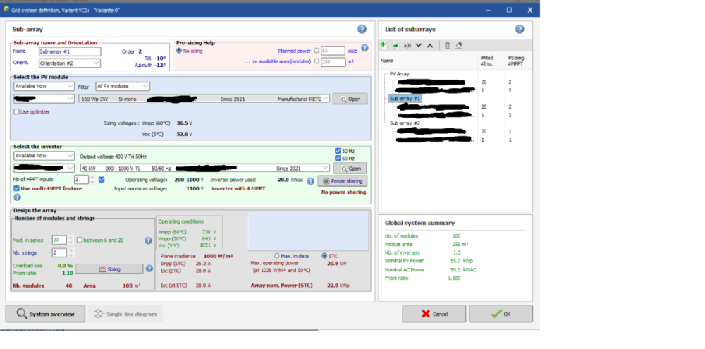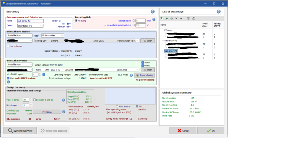 If I arrange the the 80 modules orientation 2, in 5 strings to complete the 6 inverter MPPT inputs, Pnom ratio will be too low.
