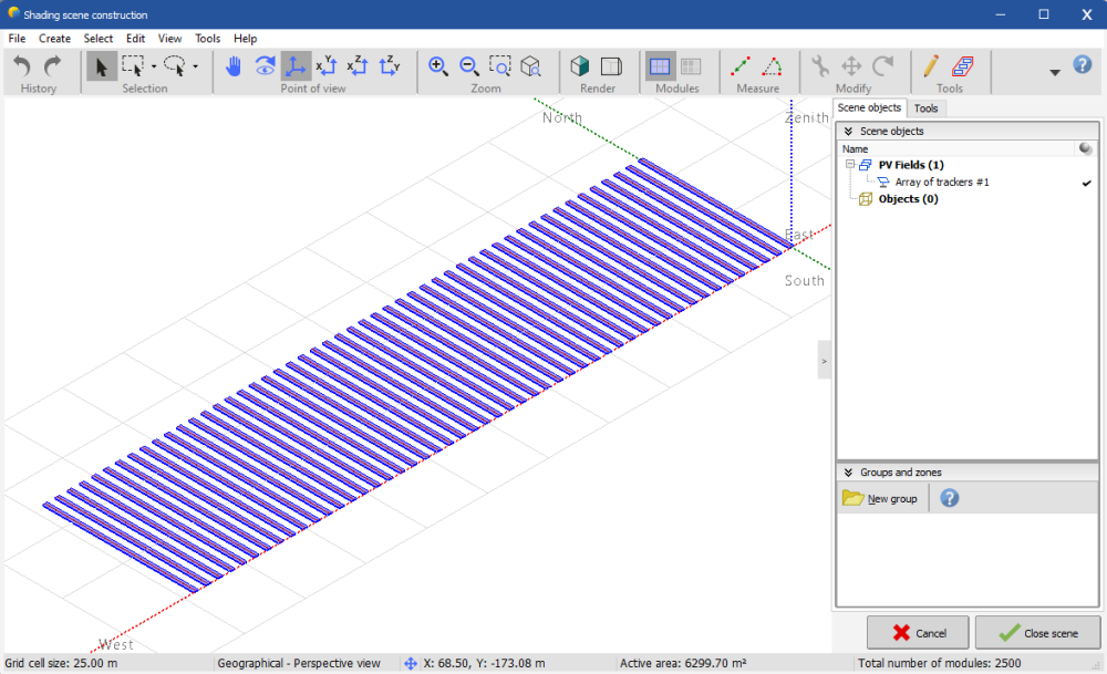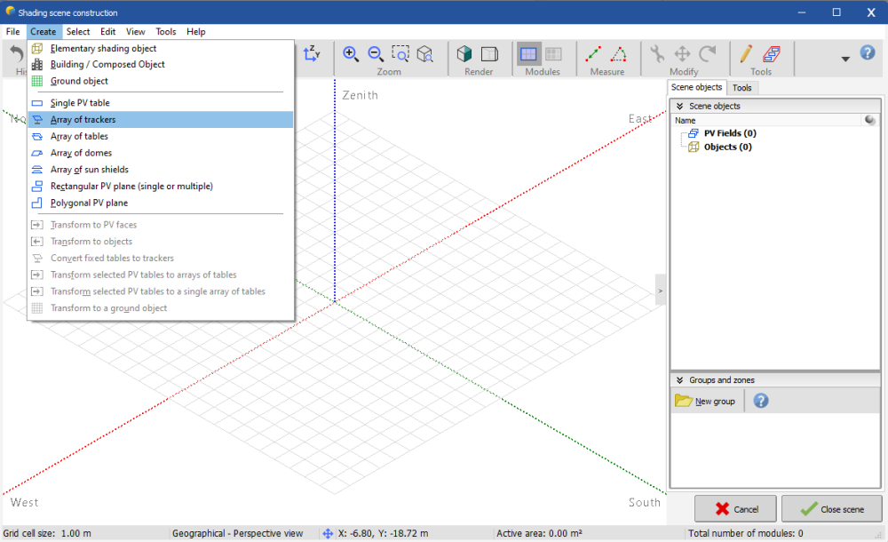 Click on Near Shadings, then on Construction/Perspective. Then Create/Array of Trackers