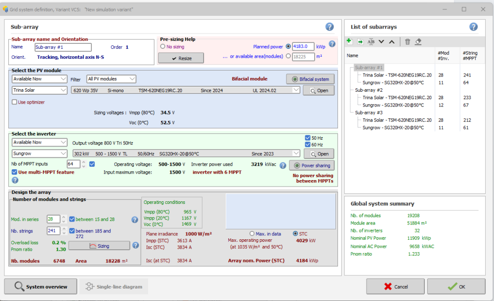 For example,sub array 1, I wanted to maintain the 4183kWp , however when I click resize, it maintains the number of inverter and increases the DC/AC ratio to 1.3 instead.