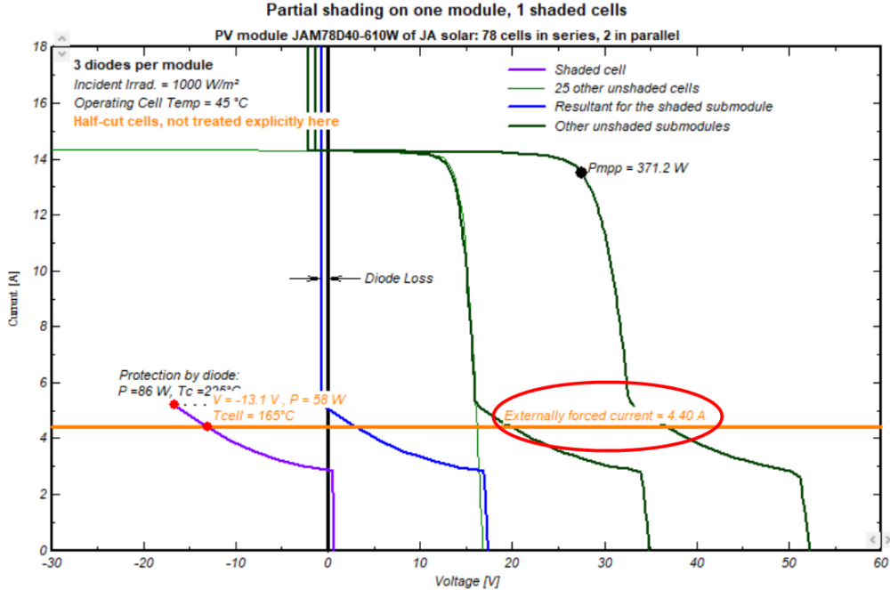 Dear pvsyst team: I am using this software to simulate the temperature and power when a cell is local shading. I find that “externally forced current= 4.4A” is all the same for the different solar modules. What does it mean? thanks!