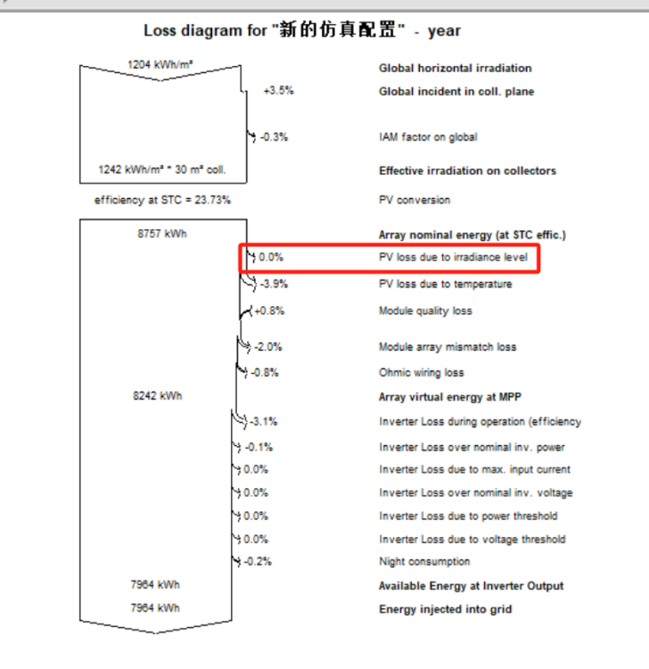 Hello, under what condidtions the PV loss due to irradiance level is 0%? Does it means that there is no any loss in low irradiance?