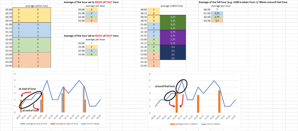 2. Does PVsyst calculate values within the hour, and then generates an average of that? And here it would be interesting how this is done. I made an example (see figure):