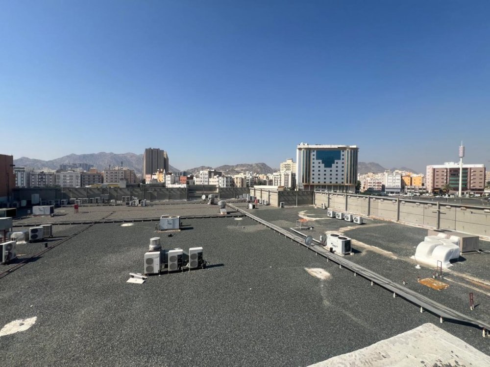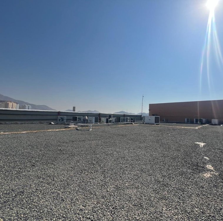 In one of our project sites, the rooftop surface is covered with gravel (dark-colored stone material).