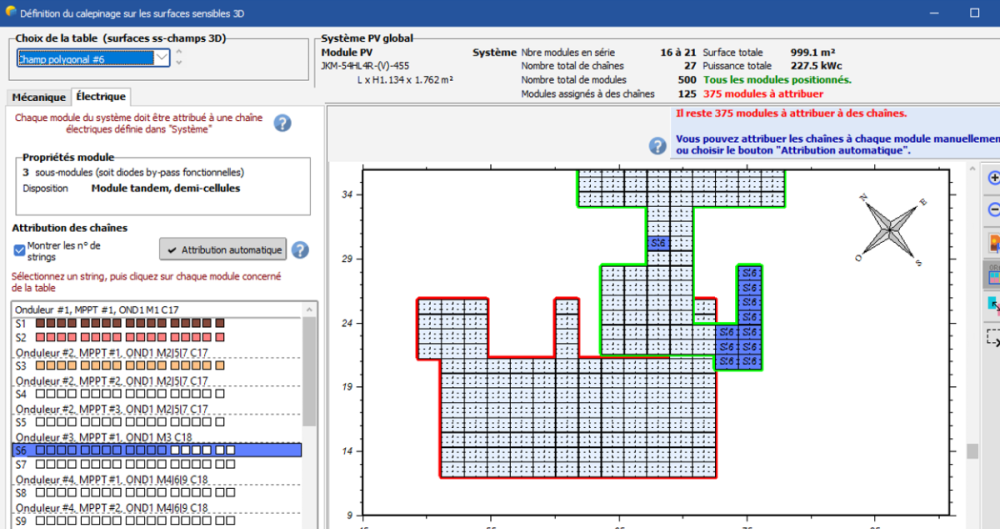 Basically, I have two PV module arrays. One array is on top of the other array, which is why they overlap. So, when I want to manually create an electrical string with my mouse, I can only modify the modules from the bottom array in the area where they overlap