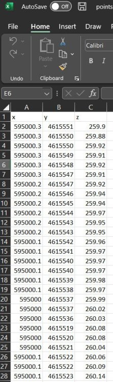 If you are importing ground data in x,y,z format, you need to have three columns with x,y,z data respectively, and one line as a row header OR no line header. It must be comma-separated in a .csv file. I would guess you have a different delimiter variable in your file and it has ignored all of the data.