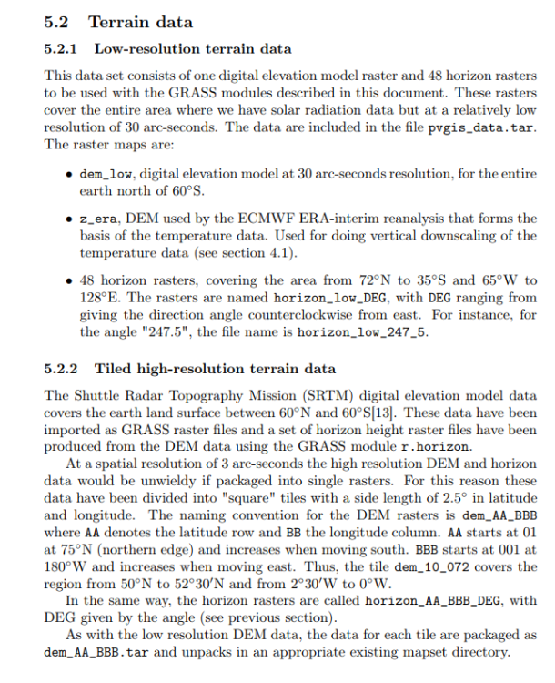 Meteonorm and PVGIS both use SRTM (depending on the coordinates); Meteonorm with 3 x 3 degree tiles, PVGIS with 2.5 x 2.5. PVGIS calculates to the first decimal while Meteonorm rounds to whole numbers. PVGIS uses 48 points (excluding 0 degree), 7.5 degree increments, whereas Meteonorm uses 1 degree increments. This causes the difference in smoothness. Repeated values are excluded in PVsyst. If you evaluate a complex site, you will find there is a significant difference in the number of horizon data points between the two. For example, one project site evaluated shows 29 points for PVGIS and 56 for Meteonorm. I would conclude that the differences lie with PVGIS and Meteonorm and the methods by which each is performing the calculations. PVsyst is importing the correct values one would retrieve directly from each source.