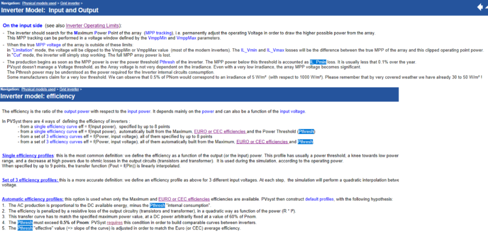 In general, it looks as though PVsyst has a minimum built in, irrespective of what is stated in the OND file. EArrayMPP must be greater than 0.5% of Pnom, and I think there might also be an irradiance requirement, although I can't find the details at the moment. Changing the setting below did not change behavior in my test. Results were pretty consistent with the 0.5% requirement, but there were four hours where there was inverter output below this. -