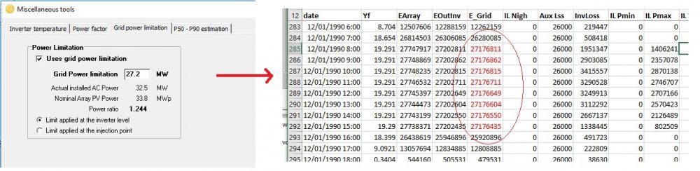 Hi All, I have been doing some modelling for a large single axis tracking solar farm recently which notably has an grid input limitation of 27.17MW. When specifying this value to two decimal places the menu appears to immediately truncate the value to a single decimal place (as per below). Most of the time the PVsyst report shows the same truncated vaue(although, very few times it has shown the untracated value). However, the hourly output data shows that the 27.17MW grid limitation is indeed in effect, as desired (as per below). showing truncation menu and hourly output It would be fantastic if the next update corrected (the appearance of) this issue, to reduce confusion when interpreting PVsyst reports. Cheers, Jake
