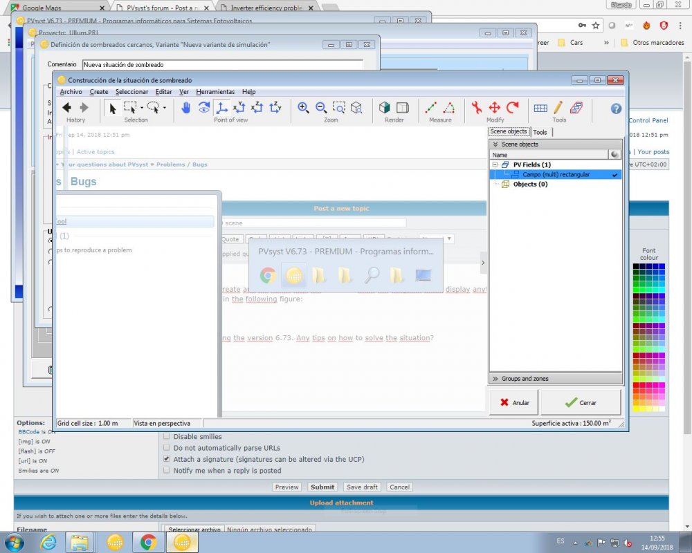 Hello, I am unable to create any 3D scene with the software since the program won't display anything (not even a blank sheet). Please find an example of the problem in the attached figure: I'm currently using the version 6.73. Any tips on how to solve the situation? Cheers!