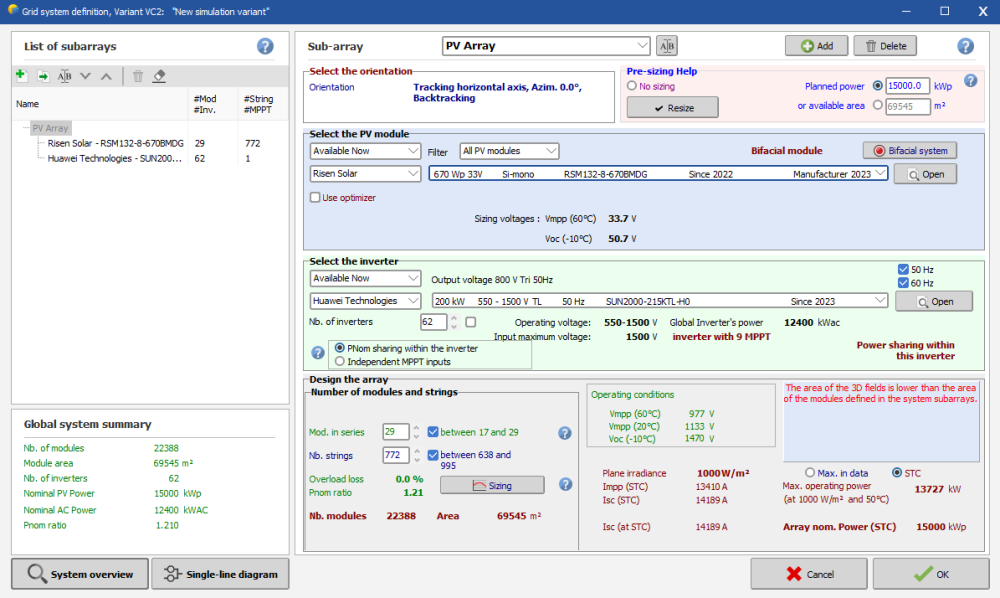Hello, I have problem creating a Tracking system in Near Shading after the 8.0.0 update. It seems that I can't connect my tables with the orientation I want. For example, I create a tracking orientation as following: In System I select the orientation I want: When I go to Near Shading, before going to Construction/Perspective the Orientation is the right one. The problem shows when I go in Zone Editing. In the Basic Parameters for my Field properties the Orientation I need is not available, even though I have "Create tracking fields" selected, so the program creates a new fixed one for me. If I go to New orientation.. an option for a tracking system is not available. What could be causing this? Can you please help? Best regards,